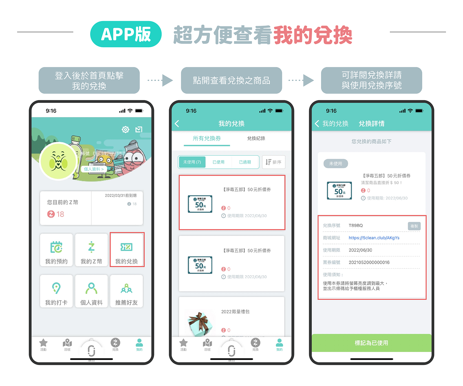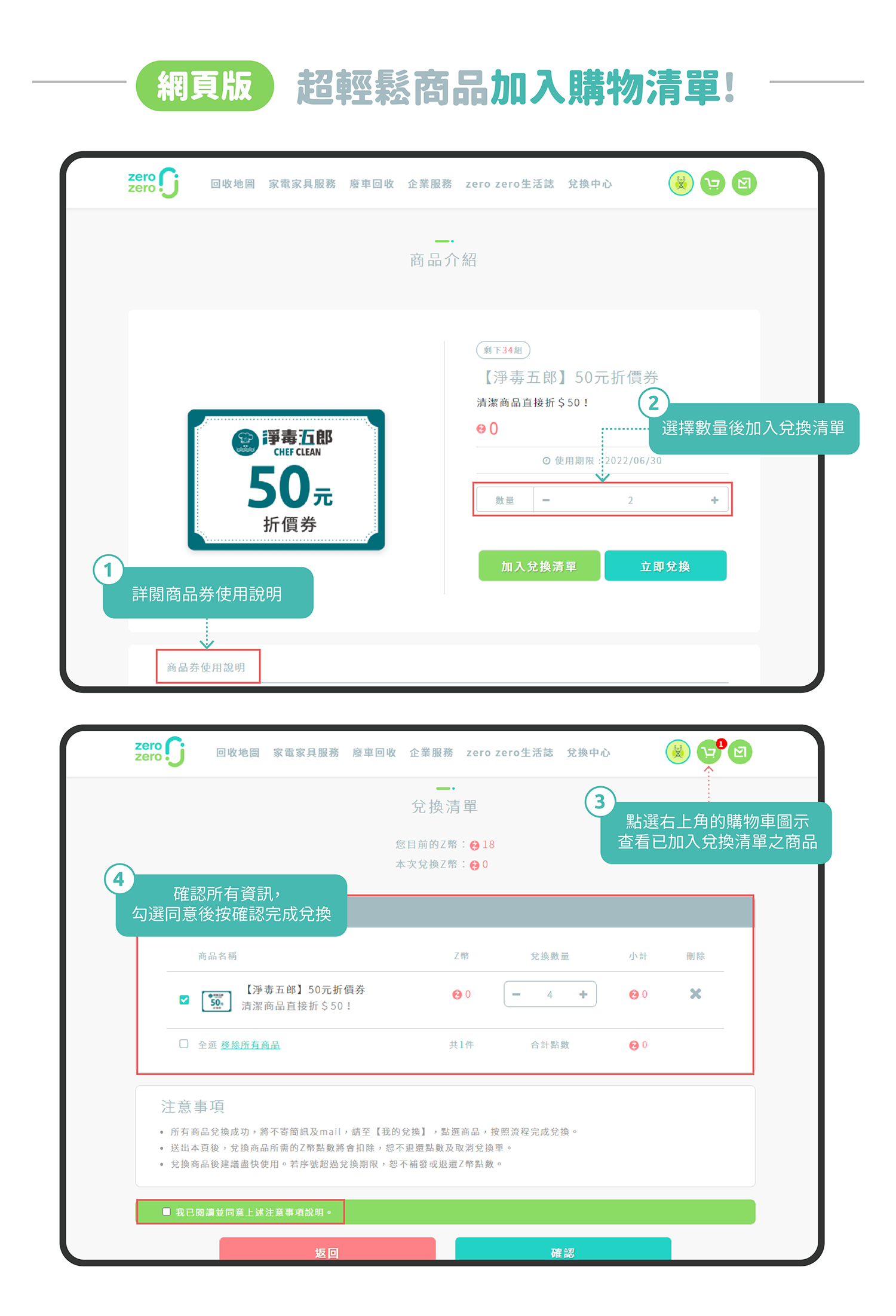 Step2 :於線上預約家電、企業回收服務或至回收站、環保店完成首次回收,即可獲得100Z幣!
