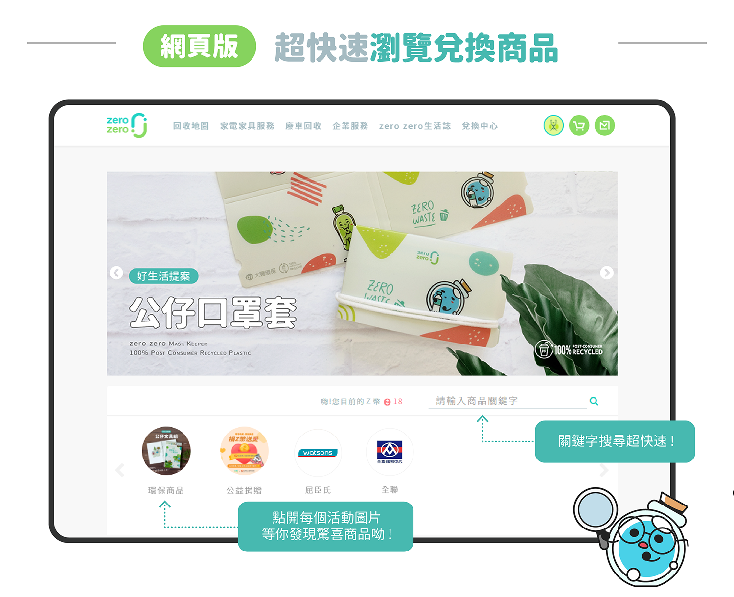 Z幣是為了回饋會員所推出的 環保獎勵制度 ,讓您無論是預約回收服務、回收站門市回收、或者是完成活動任務時,都能輕鬆累積Z幣,並用來兌換商品、禮券等優惠好禮!