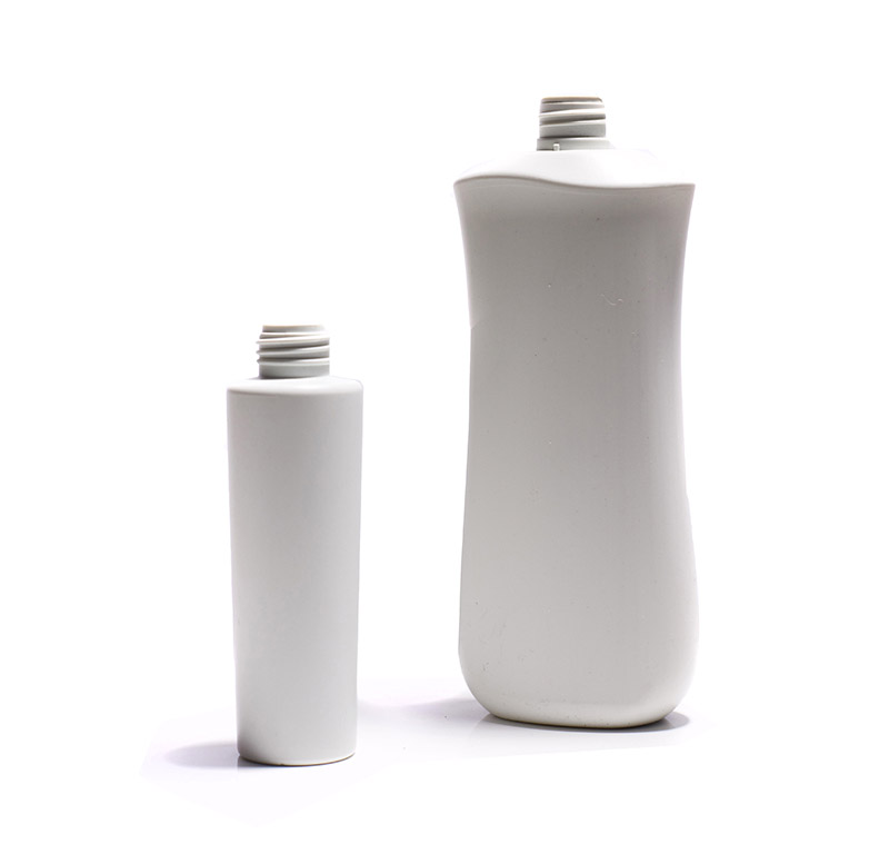 將回收標誌2號HDPE材質的牛奶瓶再製成環保瓶器,達成循環經濟理念。